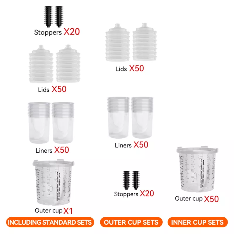 O copo de pistola de pulverização descartável fornece uma variedade de opções de capacidade (incluindo 200 ml, 400 ml, 650 ml, 850 ml), que podem atender às diferentes necessidades de pulverização, desde reparos de 1 painel até reparos de 4 painéis e reduzir a frequência da substituição do copo.