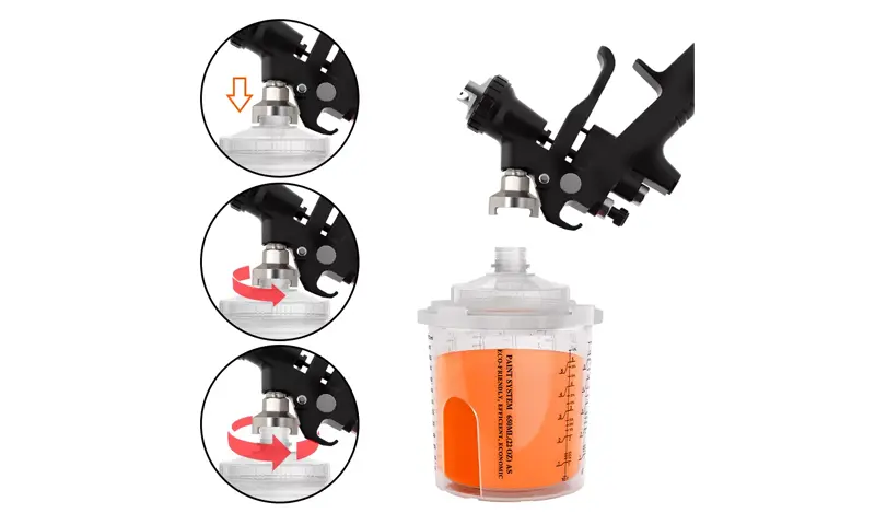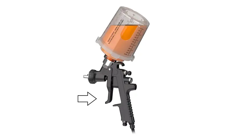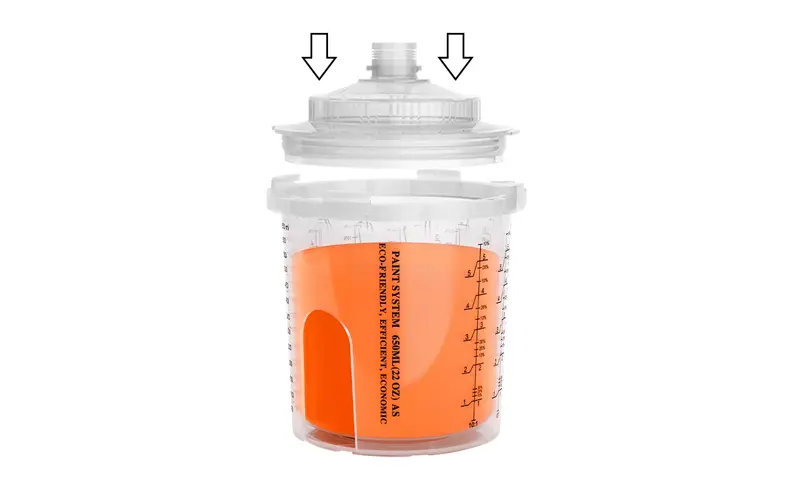 Se há restos de tinta, selar com uma rolha, inverta o copo de pistola de pulverização e guarde -a para uso futuro