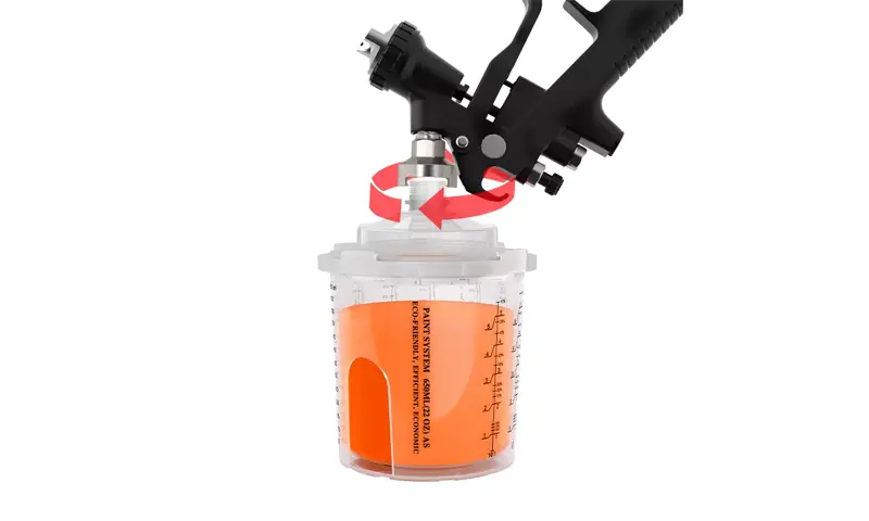 Obtenha o adaptador de copo de tinta descartável especial (Adaptador da série AS3.0) pronto para anexar à pistola de pulverização