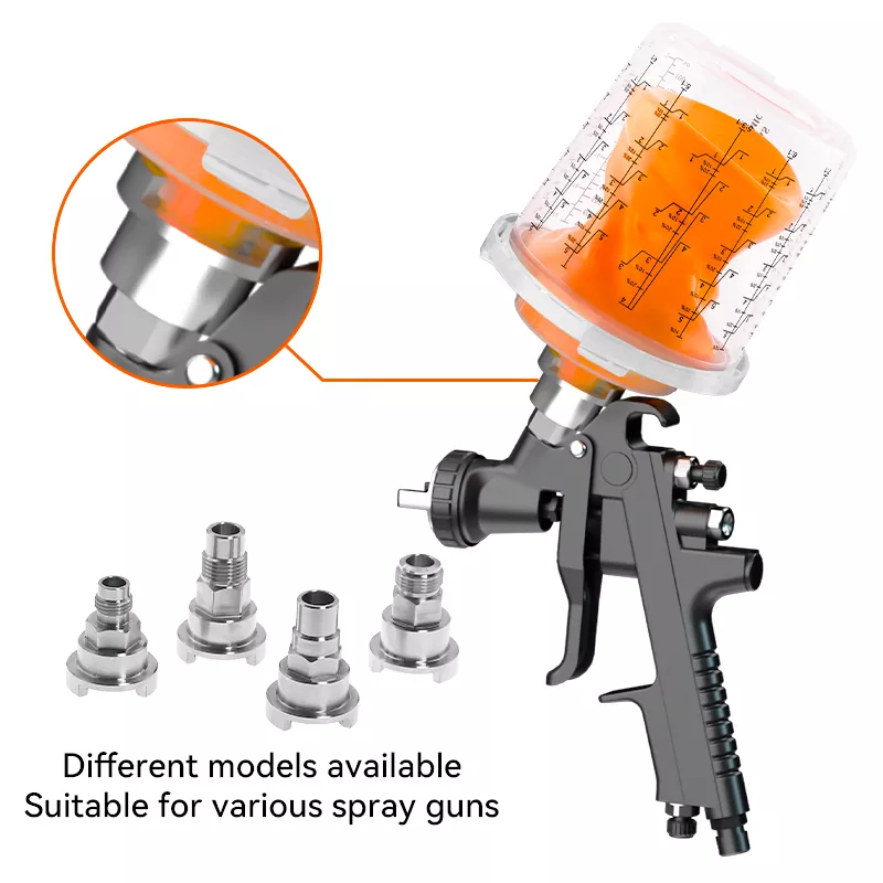 Fornecemos adaptadores para várias marcas de pistolas de pulverização para garantir a compatibilidade e a estabilidade do copo de pistola de pulverização com diferentes marcas de armas de pulverização.