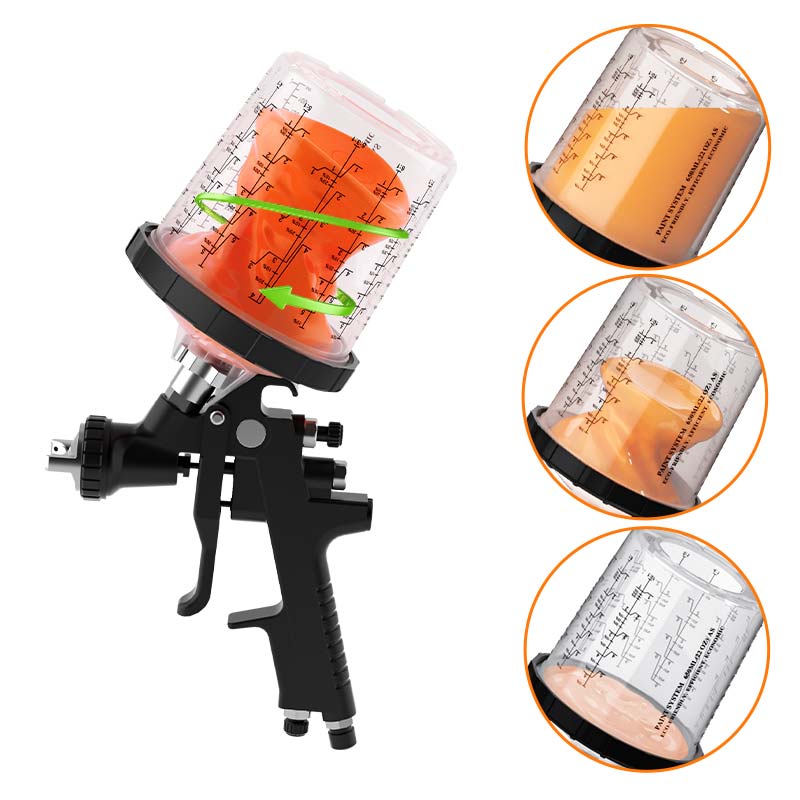 Tecnologia exclusiva de atomização de vórtice: o inovador design de copos interno torna as partículas de tinta mais uniformemente distribuídas, evitando os fenômenos comuns, como cortina e efeito de casca de laranja das armas de pulverização tradicionais. Isso melhora muito a qualidade da pulverização e aumenta a taxa de utilização de tinta para mais de 85%.